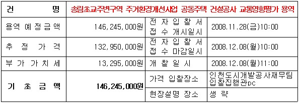 ▶ 입찰 및 계약에 관한 사항은 우리공사 경영관리본부 회계팀(☎ 032-260-5103),