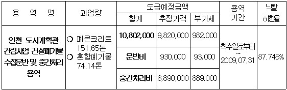인천도시계획관 건립사업 건설폐기물 수집·운반 및 중간처리용역