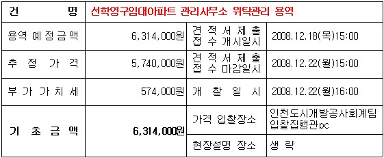 선학영구임대아파트 관리사무소 위탁관리 용역