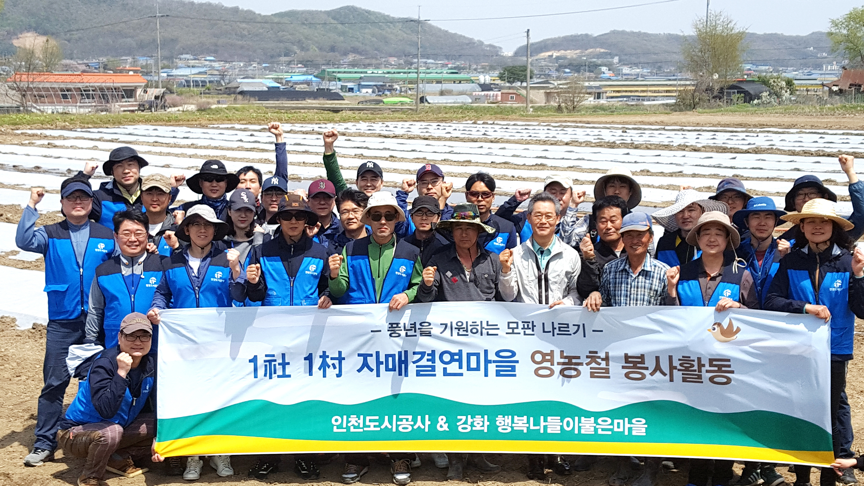 ○ 인천도시공사(사장 황효진) 해드림봉사단 31명은 곡우(穀雨)가 지나고 본격적인 농사철을 맞아 4. 24(월)에 작년 6월 자매결연을 맺은 강화 ‘행복나들이 불은마을’을 찾아 모판 3000개를 나르는 일손돕기에 나섰다.
