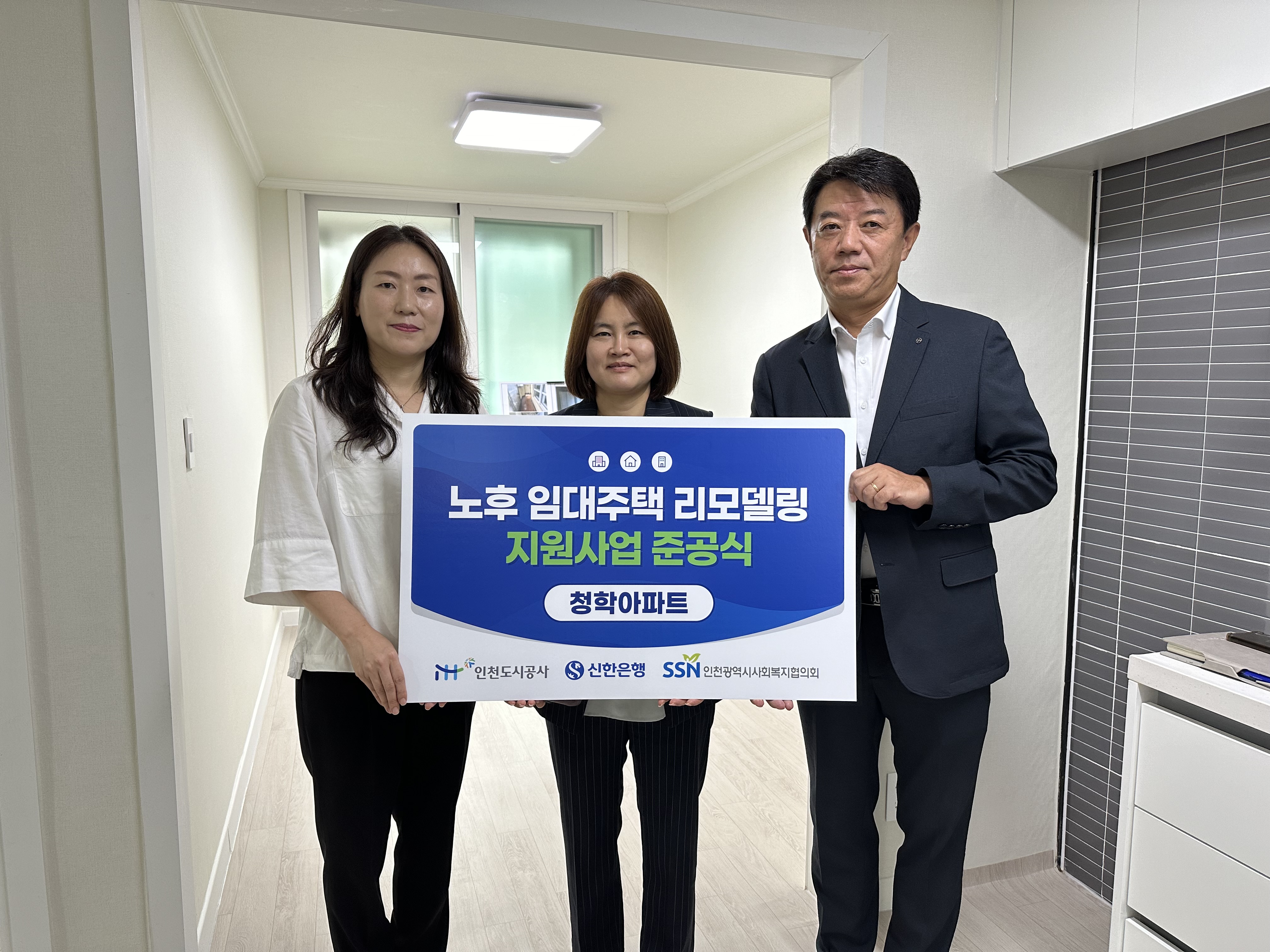 ○ 준공식에는 iH의 조금숙 주거복지본부장, 신한은행의 양우혁 본부장, 인천사회복지협의회의 나유선 나눔사업부장이 참석했다.