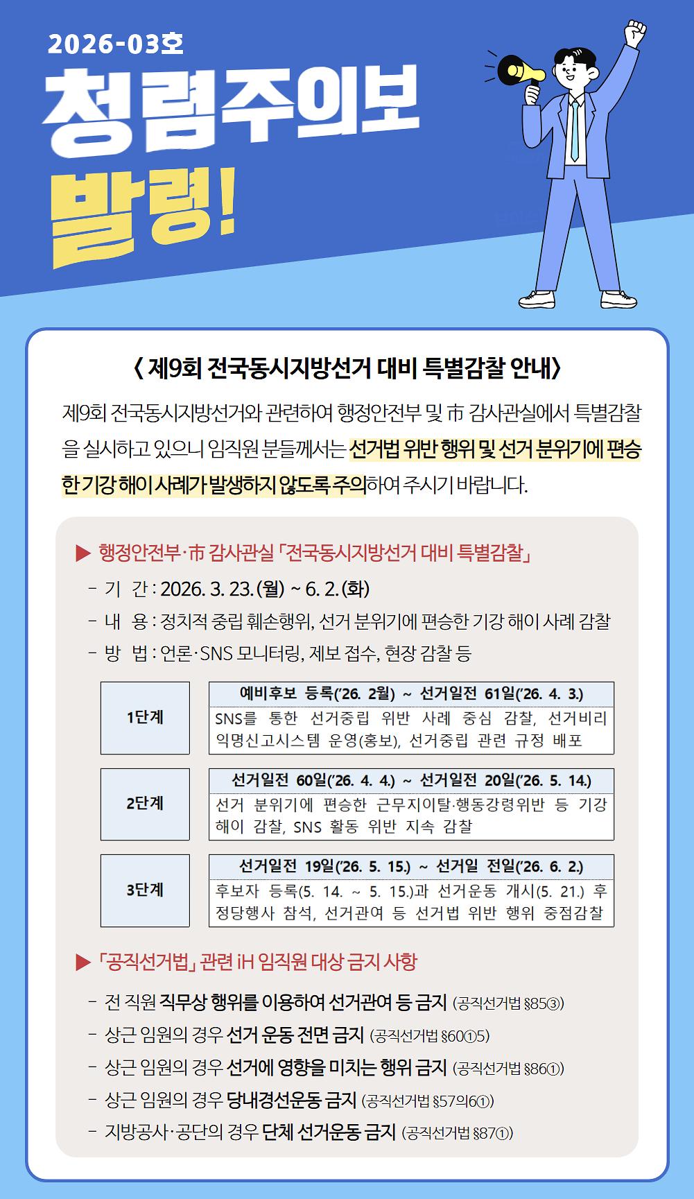 청렴주의보 발령(2026-03호)_제9회 전국동시지방선거 대비 특별감찰 안내