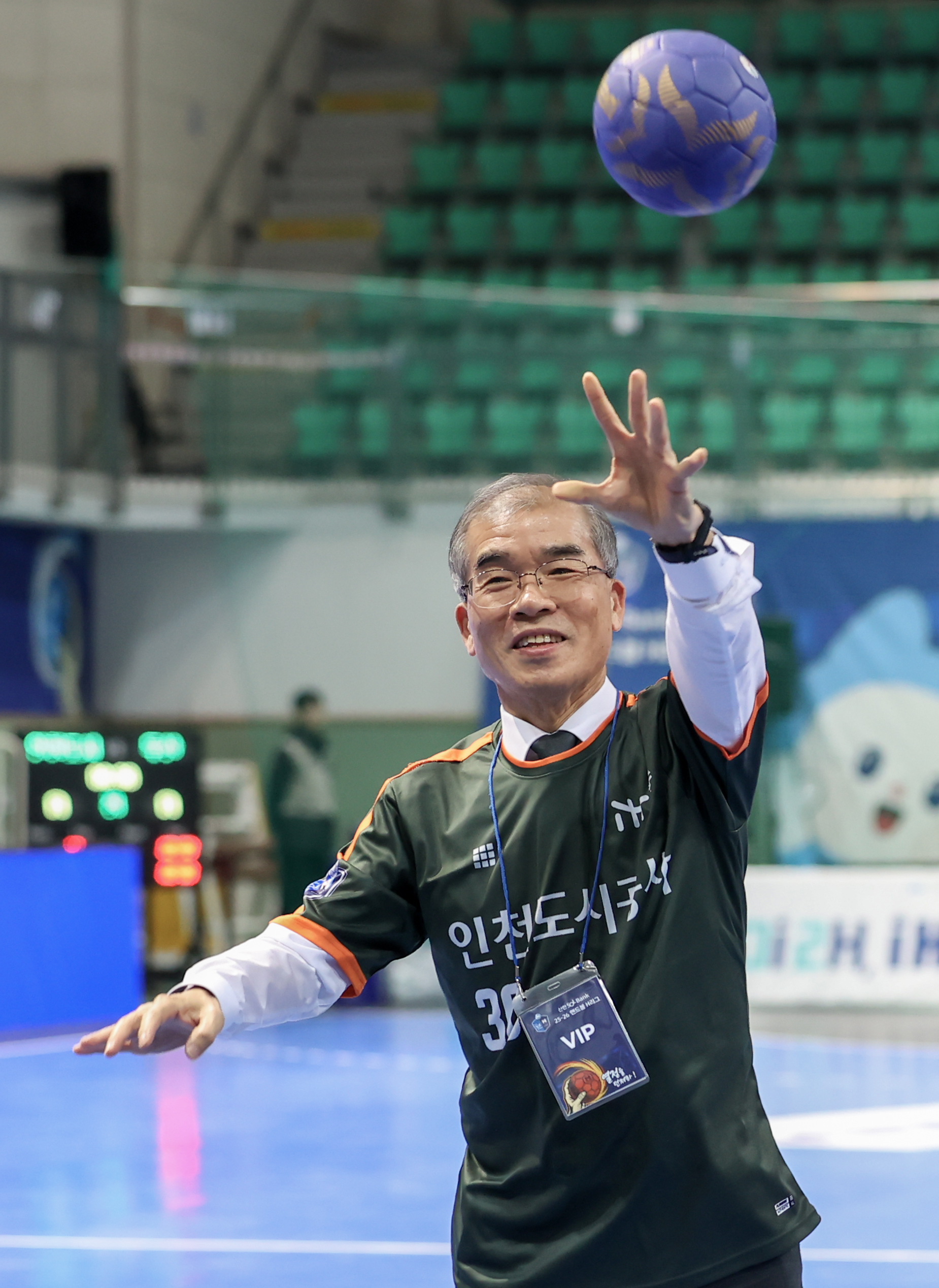 2025.12.04. iH와 두산과의 핸드볼 H리그 경기가 있었습니다. 제13대 류윤기 사장님이 시구하셨습니다. 이날 경기는 34:24로 인천도시공사가 승리하였습니다.